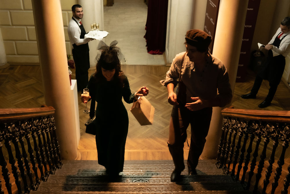 24 ноября в Усадьбе Воронцовой-Мухиной прошла иммерсивная театральная постановка романа «12 Стульев» по случаю презентации бренда ювелирных украшений с выращенными бриллиантами SMART DIAMONDS от компании «585 Золотой».