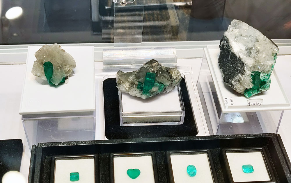 А вот более дорогие камни предлагали в сырье уже совсем немногие дилеры, причем преимущественно невысокого качества и африканского происхождения: шпинель, рубин, сапфир и изумруд. Любопытно, что самые лучшие образцы сырьевых изумрудов были представлены, собственно, вообще не сырьем, а штуфами, т.е. эстетичными минералогическими коллекционными образцами! Дилеры и не скрывали, что в таком виде они могут продать их гораздо дороже, чем в сырье или даже в ограненном виде.