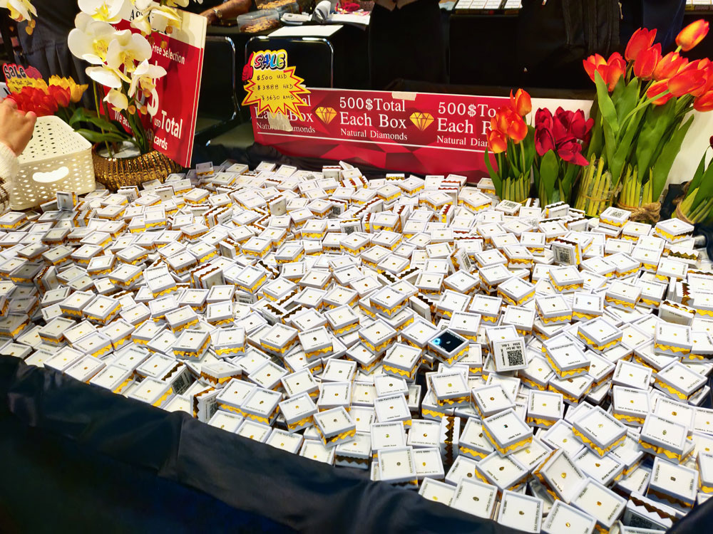 Число компаний, предлагавших ограненные синтетические алмазы, оказалось больше тех, что реализовали бриллианты из алмазов природных. По крайней мере, так показалось. Равно как и число покупателей у продавцов синтетики кратно превышало число покупателей бриллиантов из природных алмазов. Грустную картину представляла собой распродажа бриллиантов из природных алмазов в коробочках одной из компаний – любая коробочка по $500. Бриллианты разные и совсем неплохие. Но даже это не вызывало ажиотажного спроса. Тренд, однако ж. Есть о чем задуматься нашей «АЛРОСА».
