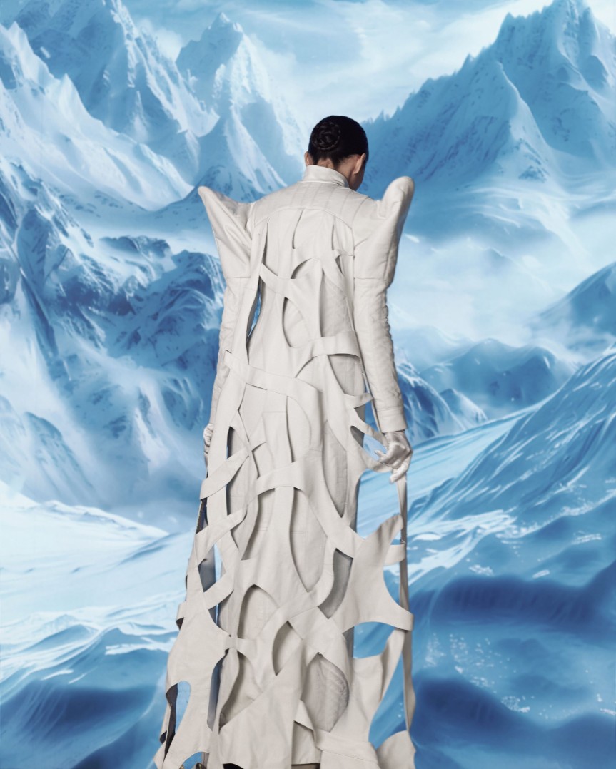 «Симфония вечной мерзлоты» представляет глубокое погружение в культуру и философию народа Саха. Эта коллекция нарядов олицетворяет величие и загадочность Якутии, где вечная мерзлота хранит не только драгоценные камни, но и дух древних традиций. Каждый элемент коллекции рассказывает историю о гармонии природы и человека, о связи между прошлым и настоящим.