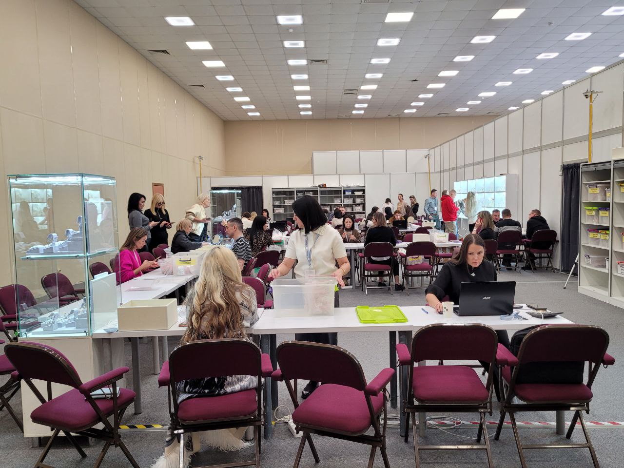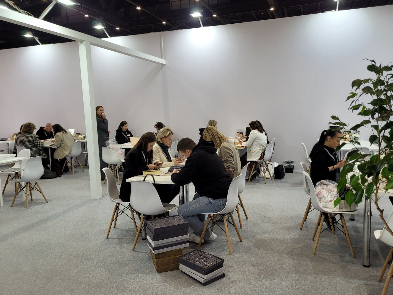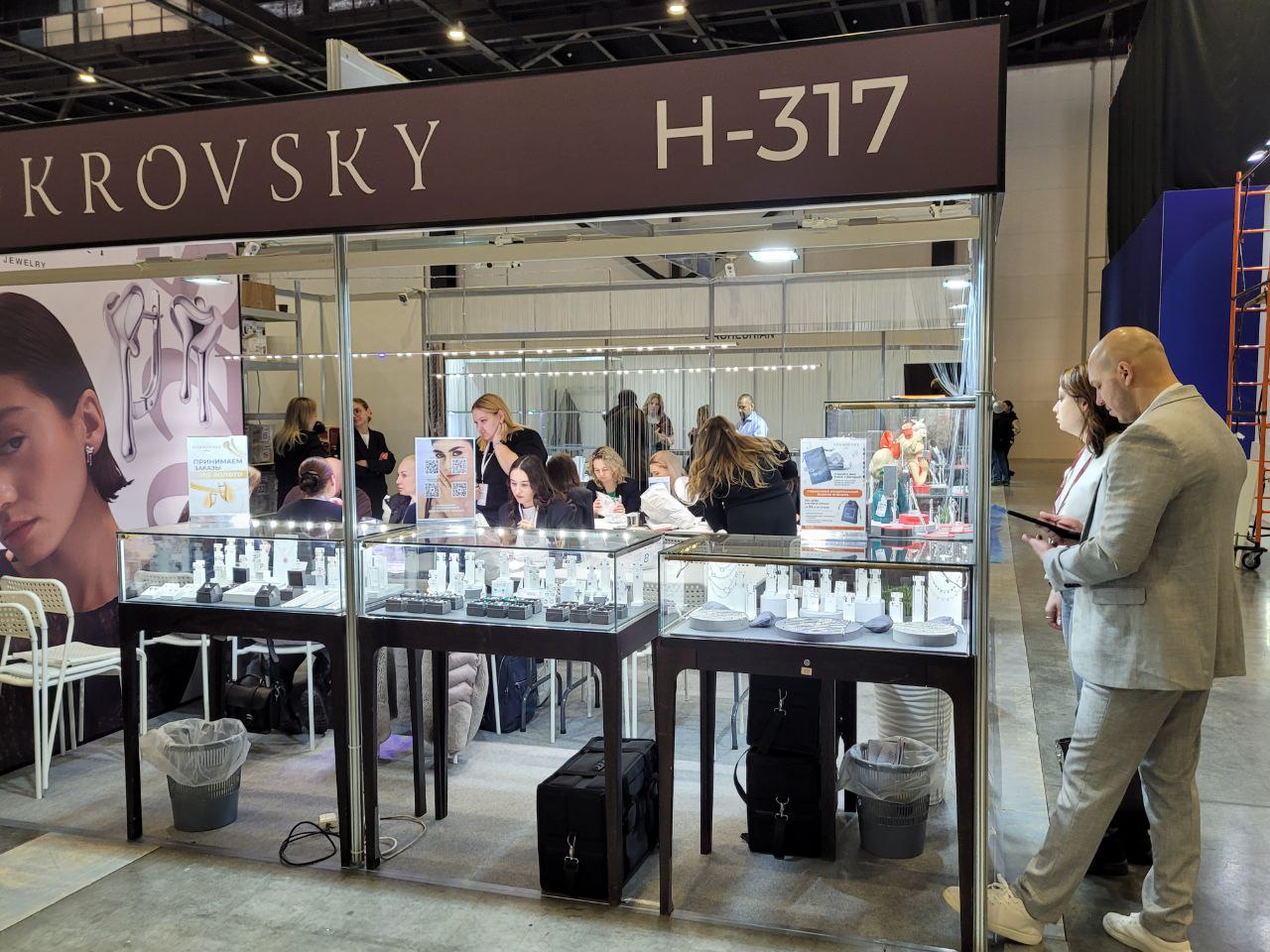 Сегодня первый день работы выставки, и с самого утра здесь кипит работа! В зале Н активно идут оптовые закупки, компании представляют свои лучшие коллекции, а оптовики внимательно отбирают трендовые украшения нового сезона.