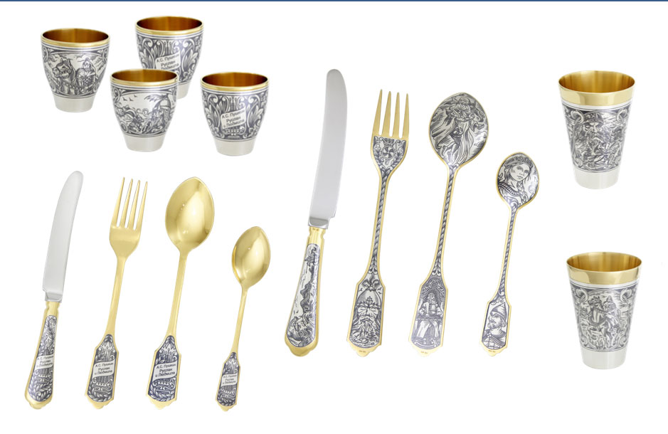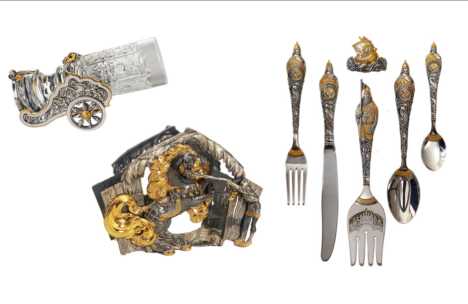 Рюмка «Пушка» и салфетница «Кони златогривые»