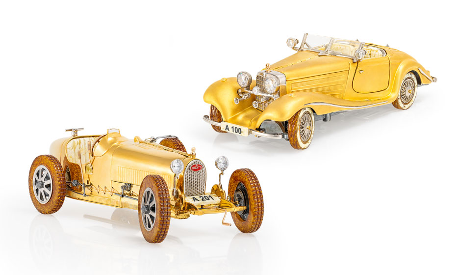 Ювелирные сувениры «Автомобиль Mercedes-Benz 500K» и «Автомобиль Bugatti Type 35»