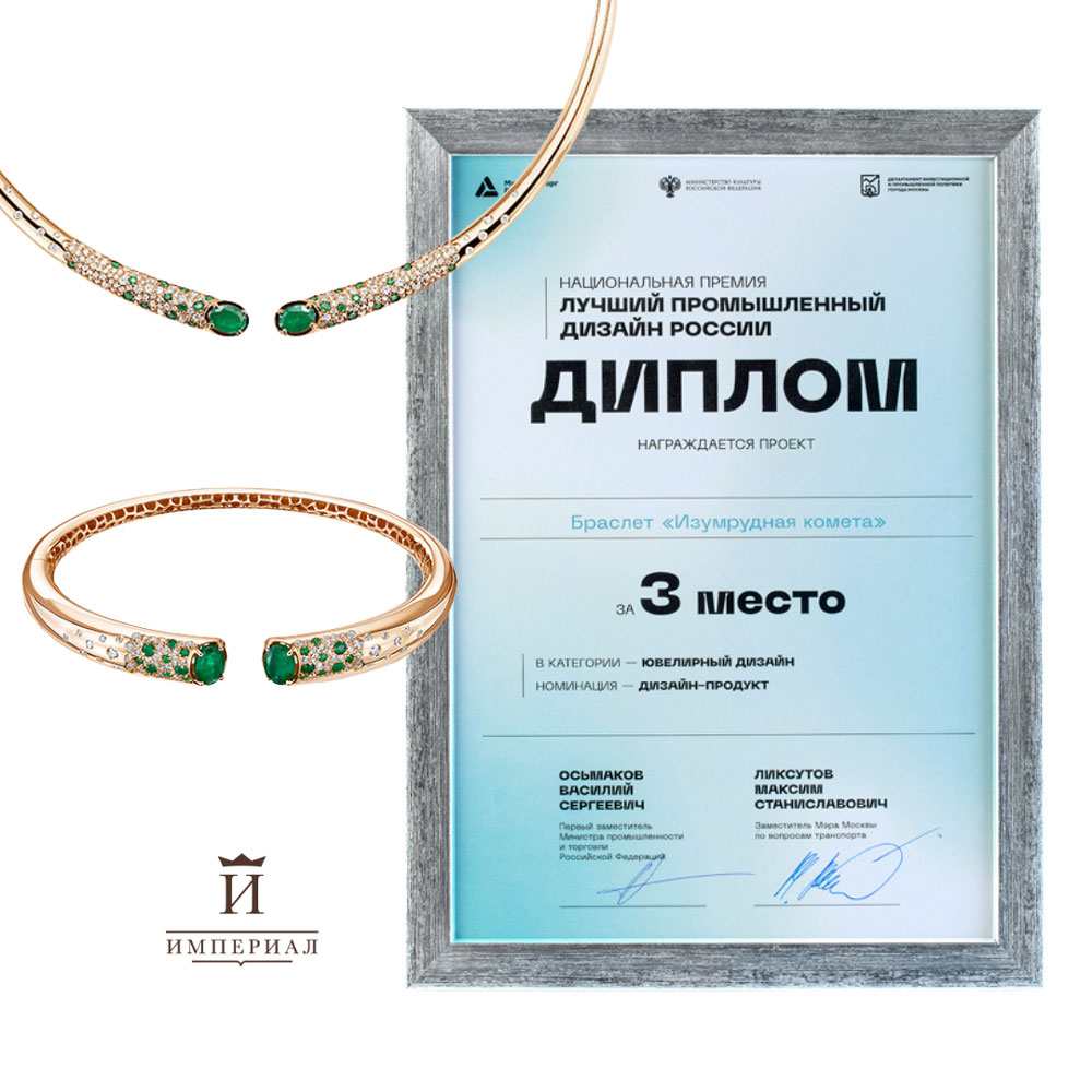 "Мы гордимся тем, что наш браслет "Изумрудная комета" был отмечен жюри в номинации "Дизайн-продукт", - прокомментировали в компании. - Эта награда подтверждает высокий статус нашей компании и вдохновляет нас на новые свершения. Огромное спасибо всем нашим талантливым ювелирам за их мастерство и креативность!".