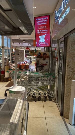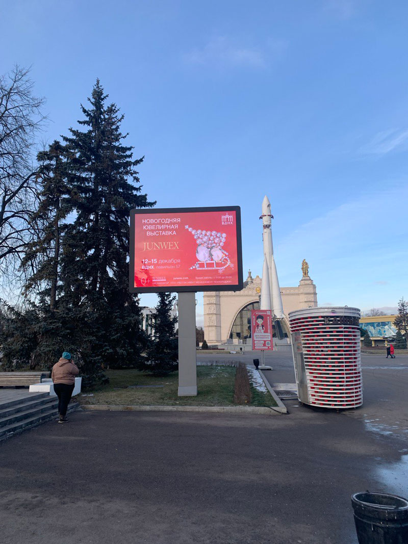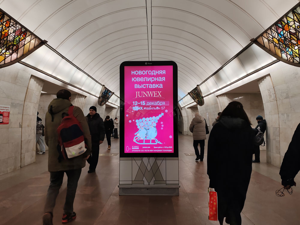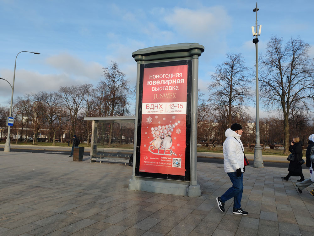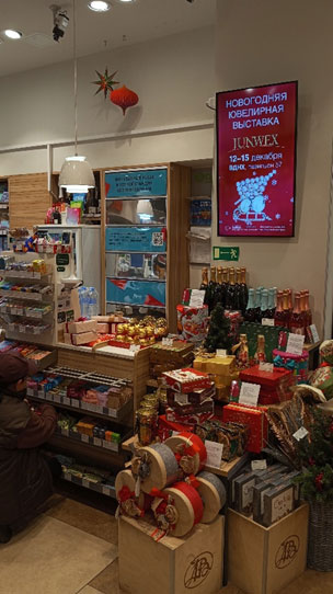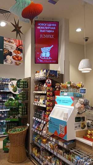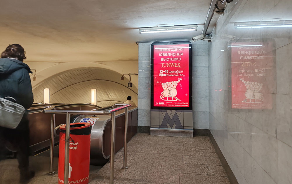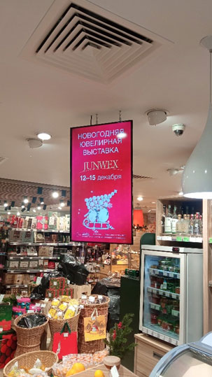 В Москве уже с начала декабря продолжается рекламная компания выставки "Лучшие украшения в России". Рекламу можно увидеть на улицах, в метро, на экранах бизнес-центров, а также в сети супермаркетов "Азбука вкуса".