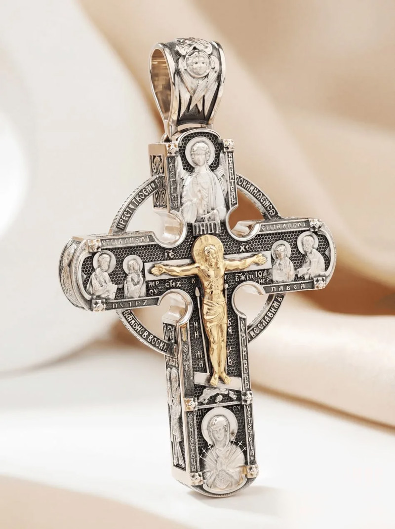 Кресты выполнены из серебра с элементами из лимонного золота. При создании коллекции использованы технологии, позволяющие добиться высокой детализации: все элементы крестов проработаны с ювелирной точностью.